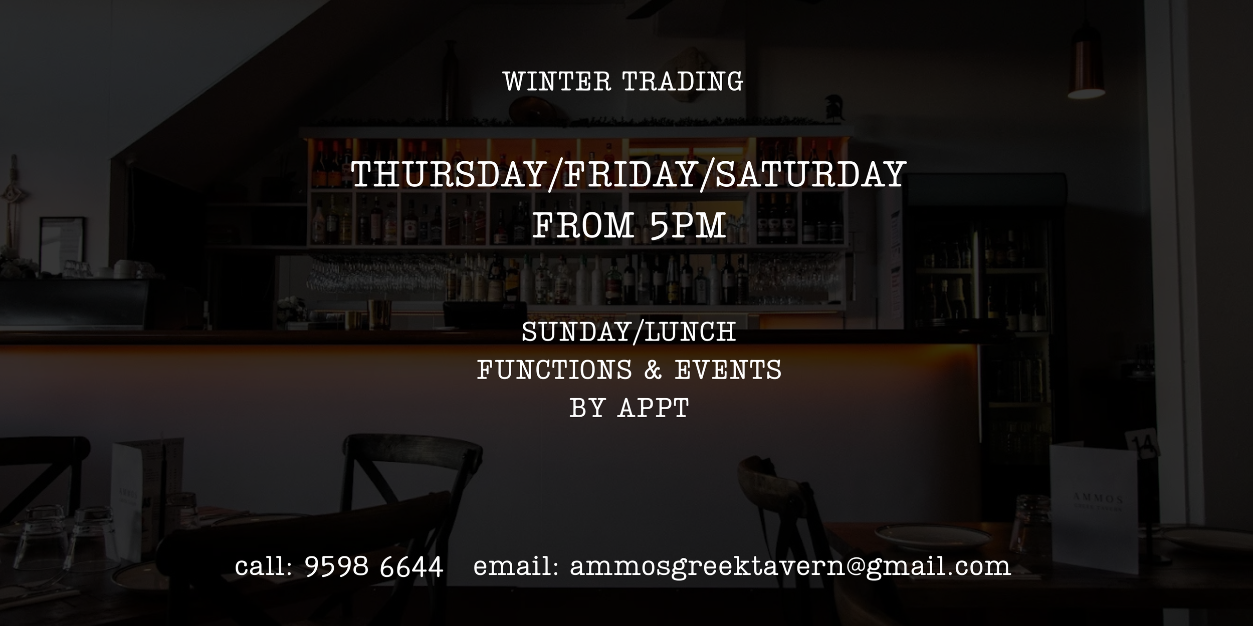 For function or event inquiries please email ammosgreektavern@gmail.Com